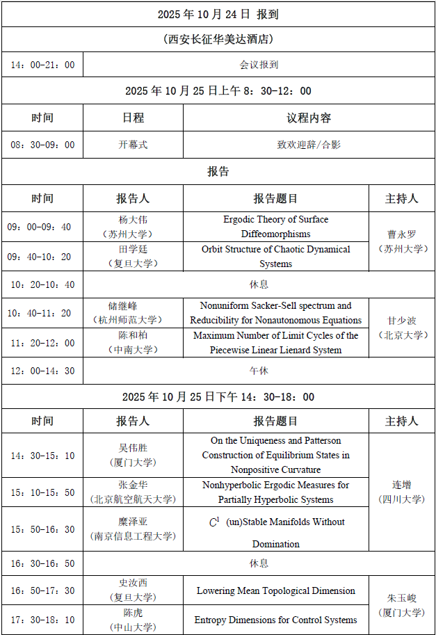 国家天元数学西北中心和西北大学数学学院拟于2025年10月24日-10月26日在西安联合举办“2025西部遍历论与动力系统研讨会”。本次会议由西北大学数学学院承办,西安市遍历理论与动力系统国际科技合作基地协办,主要议题是广泛交流动力系统、遍历理论及相关领域的最新研究成果和学术动态,旨在促进西北大学数学学院与国内外动力系统相关方向同行之间的交流与合作,以及进一步推动陕西省数学学科的发展。